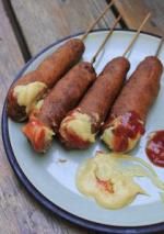 organic. It is not, usually, hand-crafted and artisanal. There is nothing farm-to-table about the corn dog – though there’s plenty that is nose-to-tail – and you absolutely should not sprinkle it with a chili salt or drizzle it with an infused oil. Salty, greasy, fried, processed, packaged, cheap, convenient, probably carcinogenic: the corn dog is the archenemy of the superfood. As such, it seems like something that should be made and served by someone else. A fair vendor, ideally, but also a lunch lady. In a pinch, you can heat a frozen one in your oven. But as for actually making one from scratch? By hand, sort of? What in the world for? It seems like a fool’s errand. I was that fool. Call me Corn Doggy Dog/