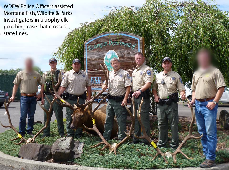 WILDLIFE ENFORCEMENT — Washington Fish and Wildlife Police recently helped Montana Fish,Wildlife & Parks officers with a poaching case involving four large bull elk taken from a closed area in Eastern Montana, and multiple suspects living in the Grays Harbor, Pacific, and Thurston County areas of Washington.