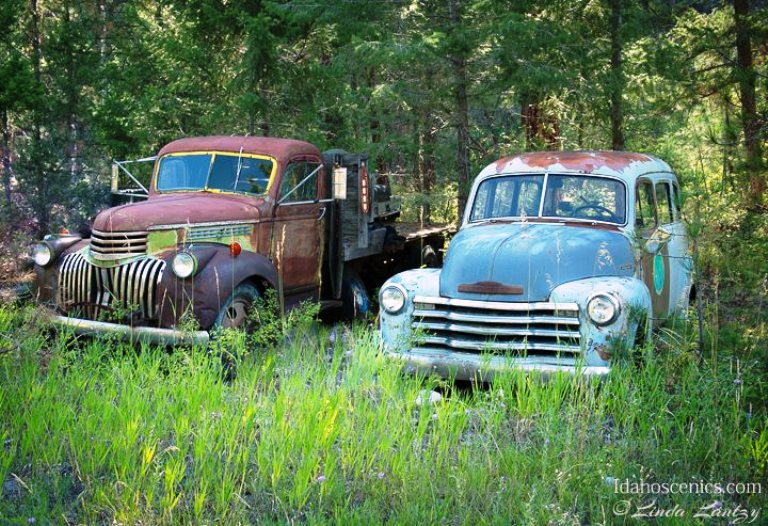 Linda Lantzy/Idaho Scenic Images found these two old vehicles up the North Fork. She wonders if anyone can name the make & model. You can see more of Linda’s terrific scenic photography here.