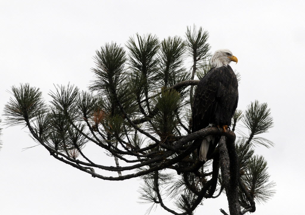 In this SR file photo by Jesse Tinsley, abald eagle uses its keen eyesight to scan Lake Coeur d’Alene for a kokanee salmon. The eagles are finally returning to Lake Coeur d’Alene for their late-fall feast. Carrie Hugo, U.S. Bureau of Land Management wildlife biologist, counted 18 bald eagles today in the Wolf Lodge Bay area. That’s up from four eagles counted last week during her weekly survey. Story here.