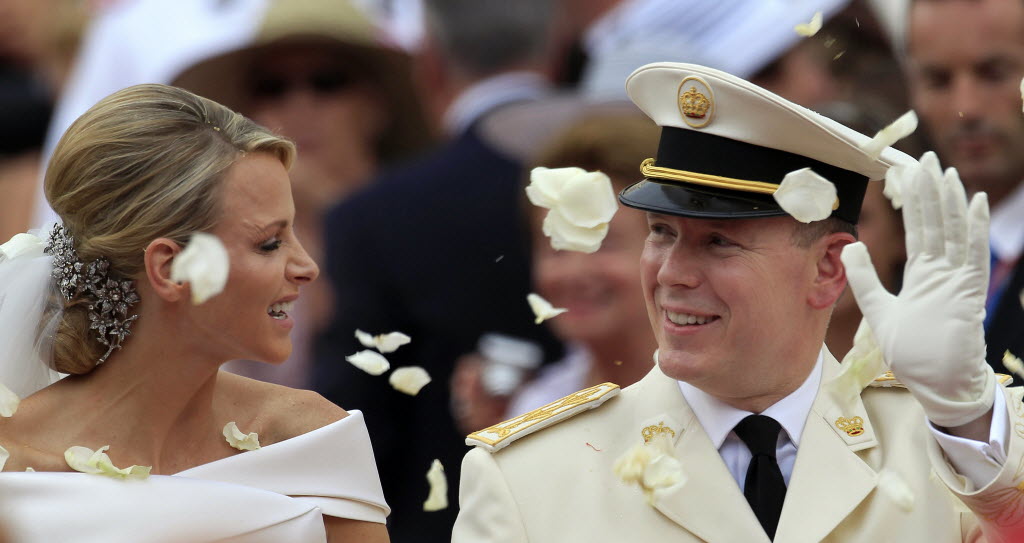 In this July 2, 2011 file photo, Prince Albert II of Monaco and Princess Charlene of Monaco depart from the Monaco palace after their religious wedding ceremony. Monaco’s Princess Charlene has given birth to royal twins, Gabriella and Jacques, today. (AP Photo/Jean Paul Pelissier, Pool, File)