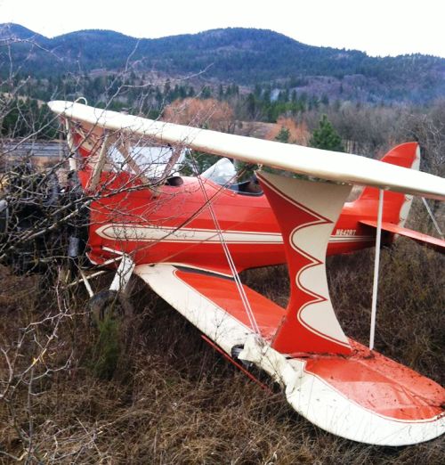 Here’s a close-up look from KCSDept Facebook page of experimental plane that pilot Ronald Tacheny, 80, was flying when he crash-landed behind his house off Whitlaw, 10 miles south of Coeur d’Alene, Wednesday afternoon.