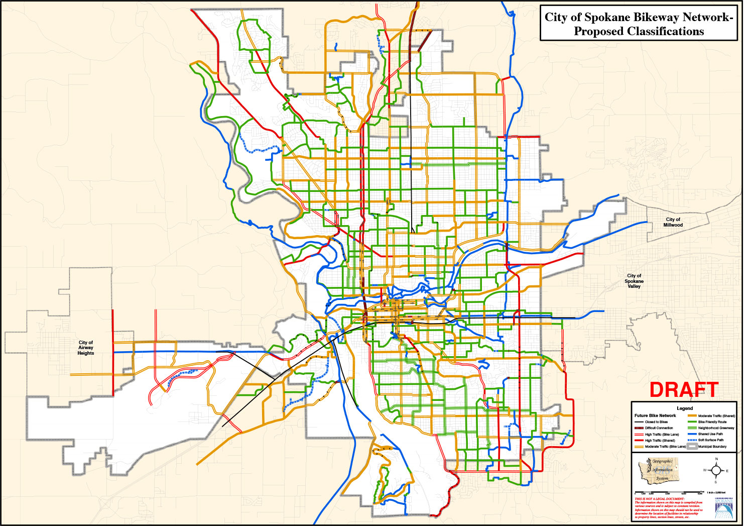 Taking two wheels through Spokane is a daunting prospect. There are hills. There’s a river running through the middle of town. This time of year, there’s nasty weather. And those cars! But there’s an effort afoot at Spokane City Hall to make the cyclist’s journey a bit easier – by remaking a map.