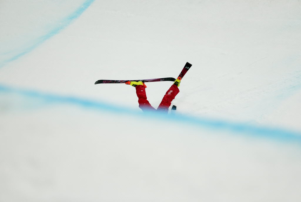 Brita Sigourney of the United States falls during women’s ski halfpipe final at the Rosa Khutor Extreme Park, at the 2014 Winter Olympics on Thursday in Krasnaya Polyana, Russia. (AP Photo/Andy Wong)