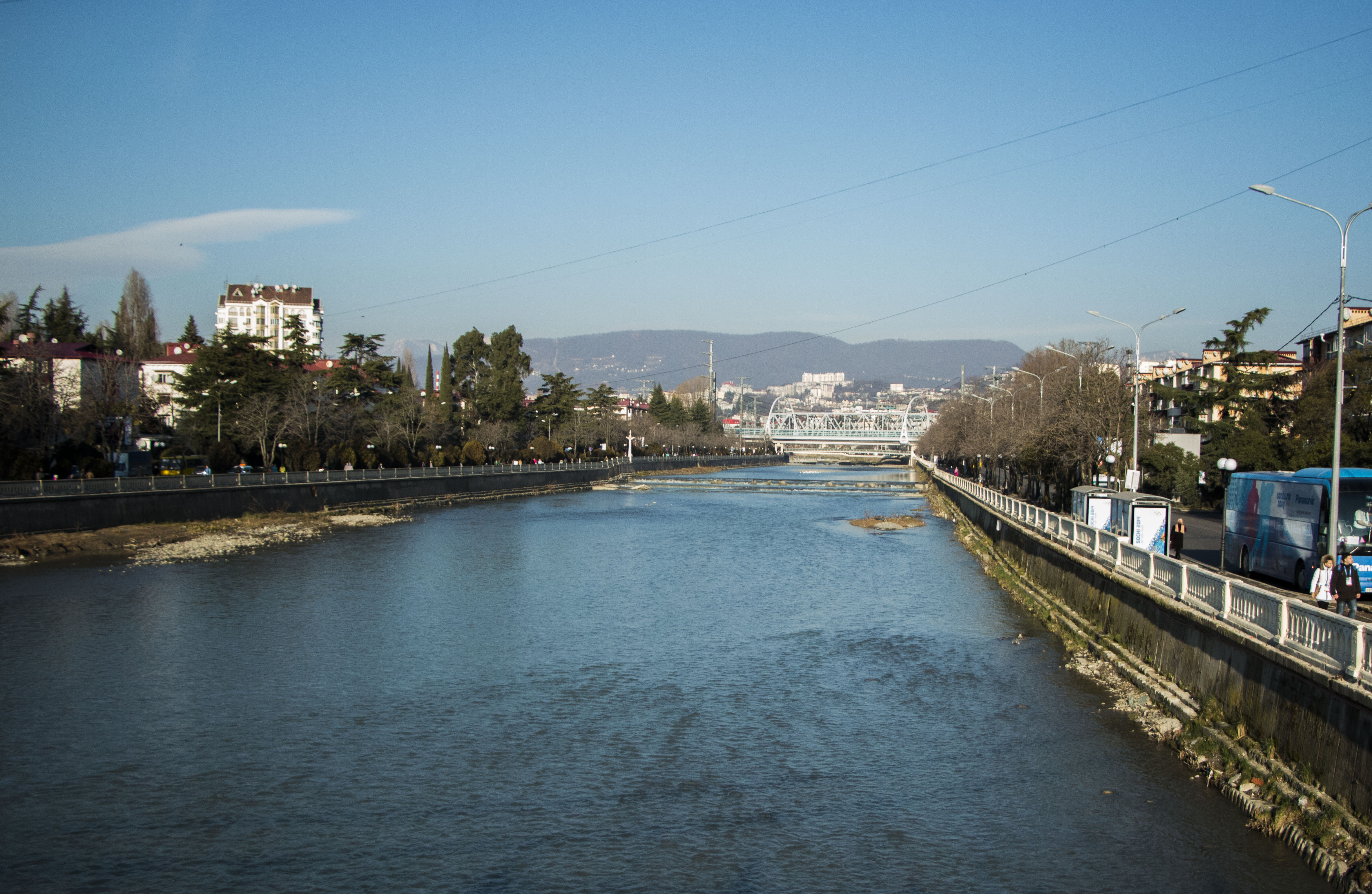 Several members of the Ball State At the Games team took the 45-minute train ride from Adler to Sochi to explore and report on Sochi, the city by the Black Sea. Taylor Irby took this photo along the riverwalk.
