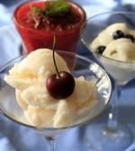 (SR photo: 2 easy-to-make granitas: a cherry-topped coconut-rum concoction (front) and blueberry-sprinkled coconut-lime or strawberry-black pepper flavors)