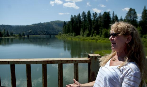 Liz Johnson-Gebhardt of Priest Community Forest Connection stands near Priest River on Thursday while talking about creating a 26-mile, nonmotorized trail from Dover to Old Town, Idaho. “Having the National Park Service on board gives you clout,” she said. (SR photo: Kathy Plonka)