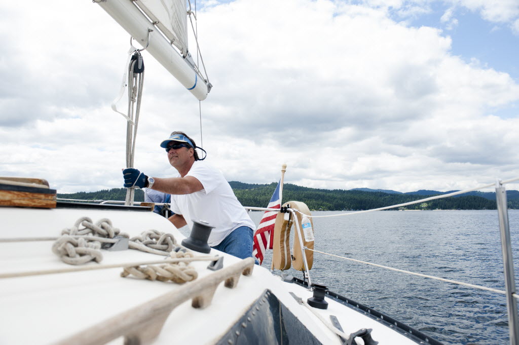 Ike Bailey sails on Monday, June 16, 2014, off Arrow Point on Lake Coeur d’Alene. (SR photo: Tyler Tjomsland)