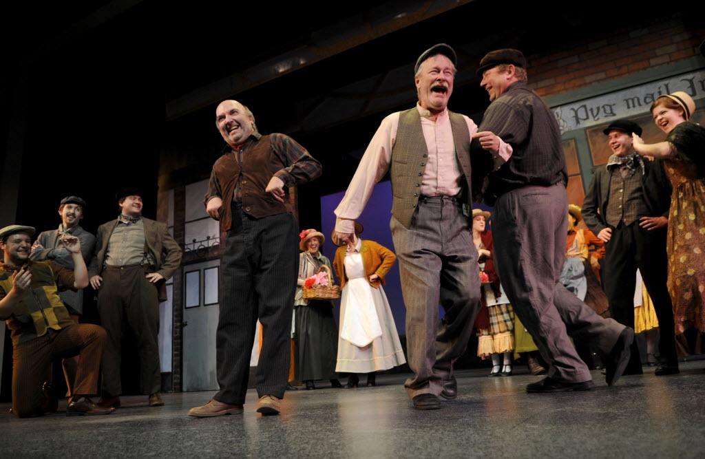 Jerry Sciarrio, left Gary Pierce, center and David Kappus, run through a few lines during rehearsal of the Kroc Center Theater’s production of My Fair Lady on Monday. (SR photo: Kathy Plonka)