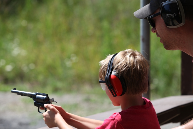 A father was showing his two sons how to shoot firearms at the Fernan Gun & Rod Club, near Fernan Lake, Sunday. (Photo: Duane Rasmussen)