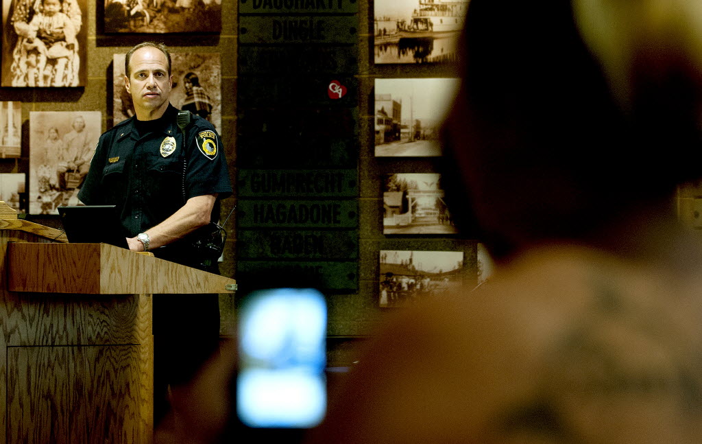 Coeur d’Alene’s interim Chief Ron Clark called the controversial police shooting of a dog inside a parked van last week “a regrettable tragedy” and said the matter is being fully investigated during the start of Tuesday night’s City Council meeting in Coeur d’Alene. Story here . (SR photo: Kathy Plonka)