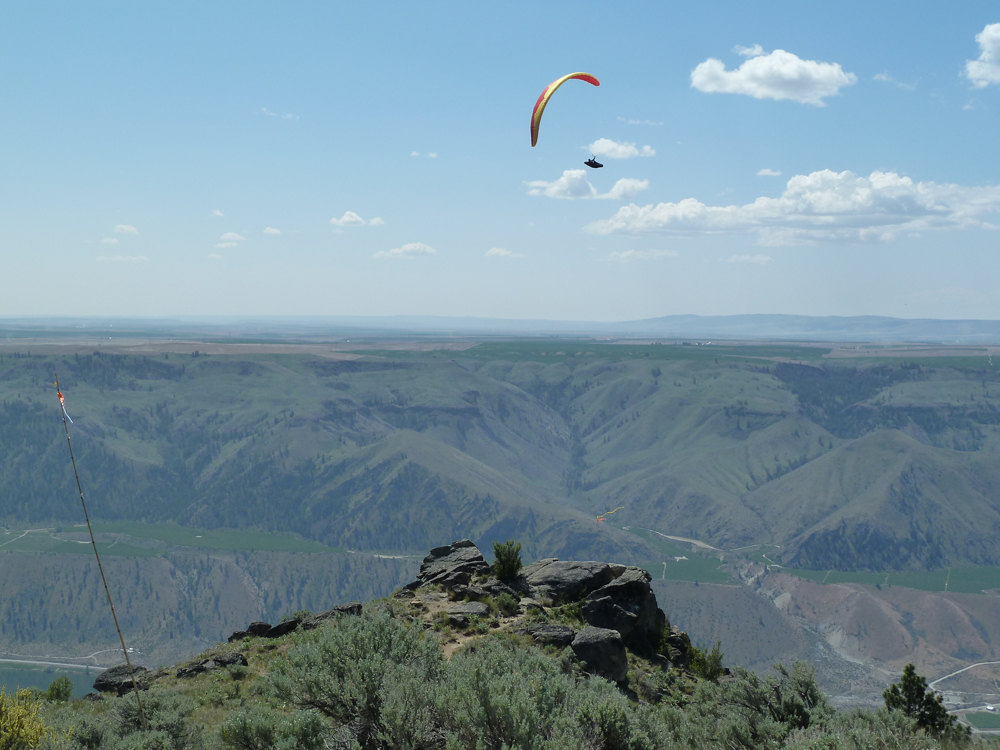 Paraglider Matt Senior takes off from Chelan Butte on May 31, 2014, en route to setting a state free-flight distance record of 180 miles. (Heather St. Claire)