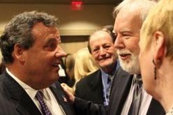 (Duane Rasmussen file photo: Former state senator Mike Jorgenson, second from right, talks to New Jersey Gov. Chris Christie at a reception in Coeur d’Alene last fall)