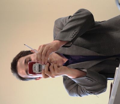 At the Panhandle Pachyderm Club Friday, executive director Wayne Hoffman of Idaho Freedom Foundation uses a catsup bottle to illustrate the point that citizens need to check the ingredients in proposed legislation. Many times, he said, politicians say they favor one thing and end up voting for something entirely different. (Photo: Duane Rasmussen)
