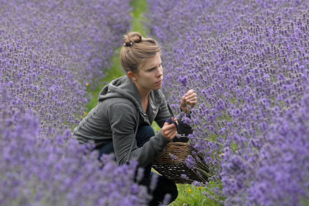 Cleo Whiting of Delta, Colo., clips lavender blossoms on Saturday at the Martha Lane Lavender farm near Sequim, Wash. A dozen lavender farms across eastern Clallam County opened their grounds to visitors during the annual three-day Lavender Weekend, a celebration of all things lavender. (AP Photo/The Peninsula Daily News, Keith Thorpe)
