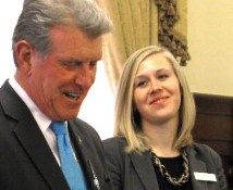 (Eye on Boise file photo: Gov. Butch Otter introduces Cally Younger as the new state ombudsman in April)