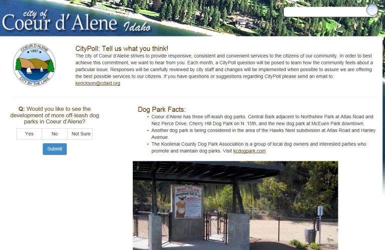 Screen shot of new online poll for city of Coeur d’Alene, which goes live Friday.