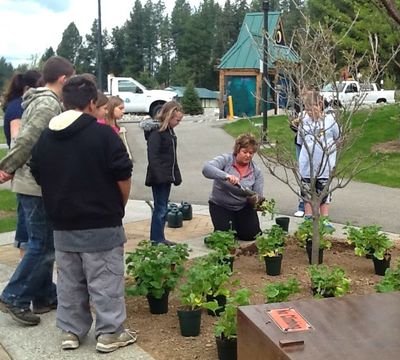 Hayden Meadows Elementary fourth graders rolled up their sleeves on Saturday and planted 60 geraniums at the Fallen Heroes Memorial Plaza. The plants were grown in their school’s greenhouse. Story here . (Coeur d’Alene Today photo: Keith Erickson)