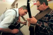 (SR file photo: Frank Wagner, left, moves in to hear the tone of Rod Anderson’s guitar in 1999)