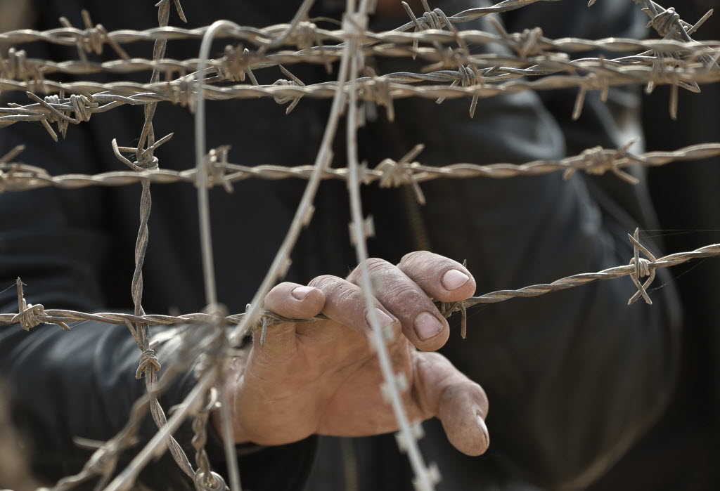 A Syrian Kurd holds his hand on to the barbed wire fence that marks the Turkey-Syria border on the outskirts of Kobani, seen from the Turkish side of the border outside the village of Yumurtalik. Kobani, also known as Ayn Arab, and its surrounding areas, has been under assault by extremists of the Islamic State group since mid-September and is being defended by Kurdish fighters. More than two months into its assault on Kobani, the Islamic State group still pours fighters and resources into trying to take the besieged Kurdish town, but the drive has been blunted. Aided by 270 U.S. airstrikes, the town’s determined Kurdish defenders appear to be gaining momentum, a potentially bruising reversal for the militants who only few weeks ago seemed unstoppable in their march to victory. (AP Photo/Vadim Ghirda, File)