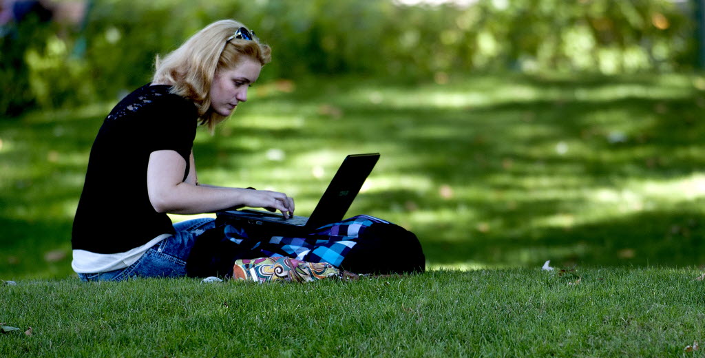 “We’re having an interesting extended summer, ” said North Idaho College student Paiten LaBolle as she did some homework at the campus in Coeur d’Alene on Monday. (SR photo: Kathy Plonka)