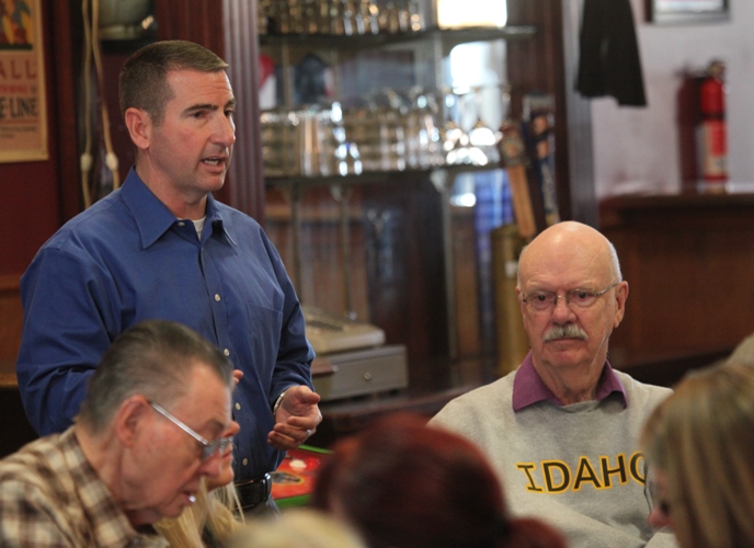 Coeur d’Alene Police Chief Lee White speaks at the Kootenai County Democratic Club luncheon at the Iron Horse today. (Photo: Duane Rasmussen)