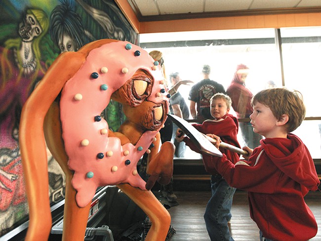Dawn of the Doughnut, which opened its doors a year ago, will close in Spokane Sunday, Sept. 14, according to Chey Scott of the Inlander. Customers and fans lament that the zombie-doughnut-themed shop offer only morning hours. Story here . (Inlander Photo: Young Kwak)