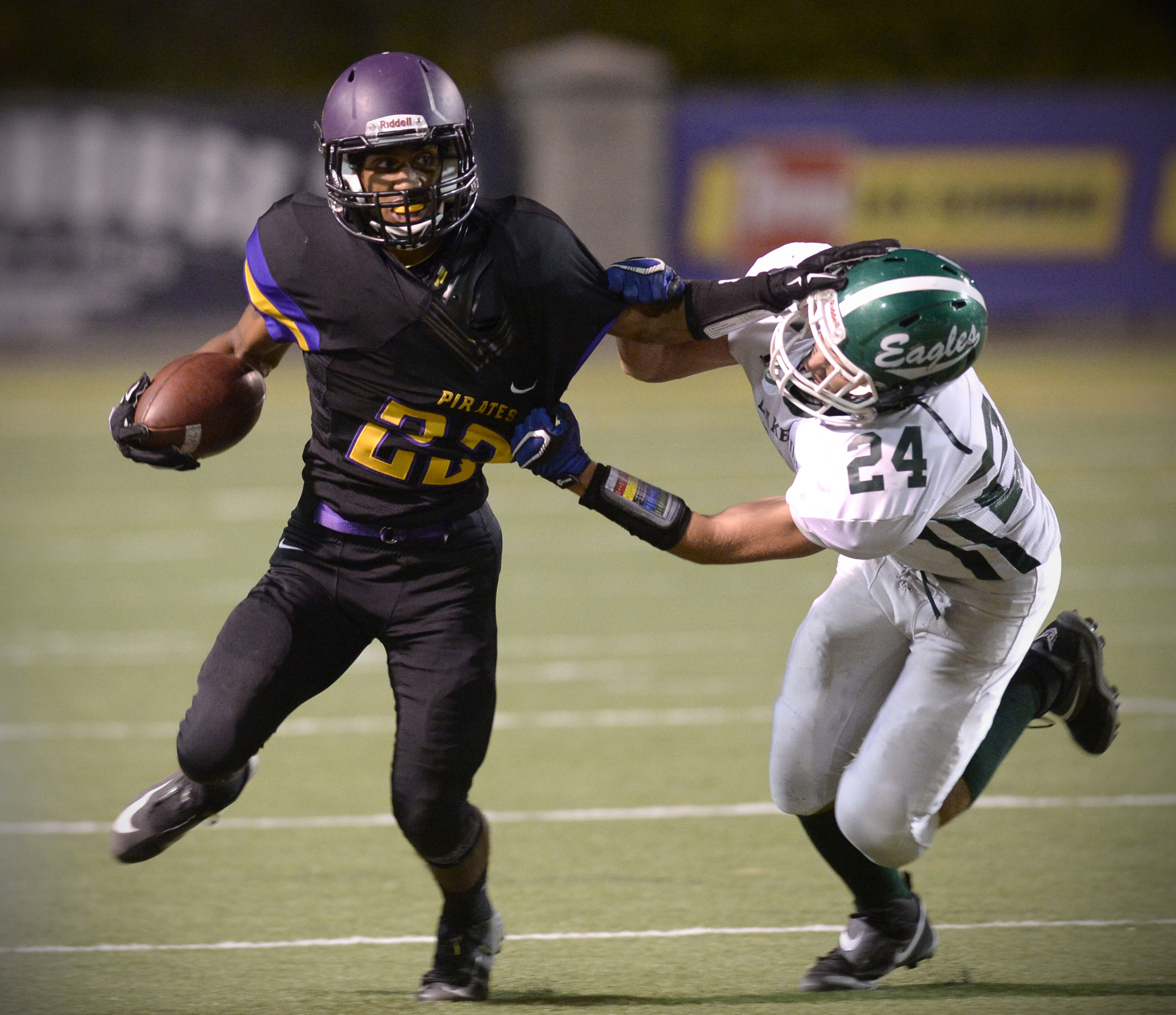 The Pirates picked off passes on two of Lakeside’s first three possessions. The first interception set Rogers up at its 47-yard line. The second was even better as the Pirates’ Patrick Pullins came away with the ball after Gay tried to force the pass in a crowd of three defenders.