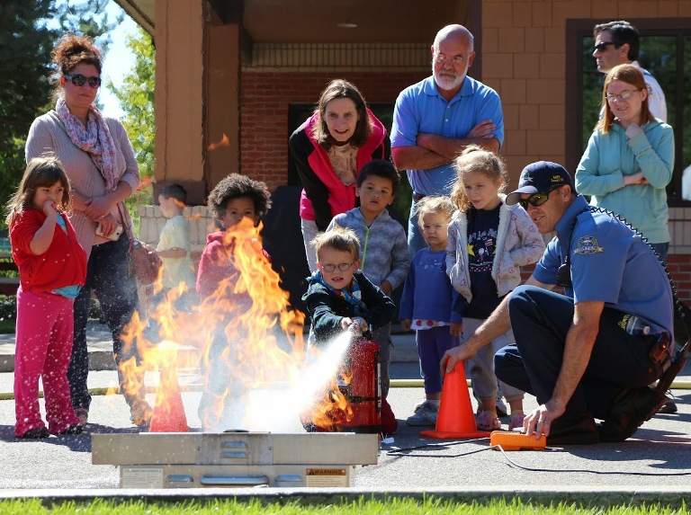 Coeur d’Alene Fire Chief Kenny Gabriel said last weekend’s open house at Fire Station No. 3 was by far the best attended event the department has ever sponsored. The theme this year was “Working Smoke Alarms Save Lives.” Kids especially liked the fire extinguisher demonstration and exploring the fire engines. It was all part of the department’s 125-year anniversary celebration. (Coeur d’Alene Today photo: Keith Erickson)