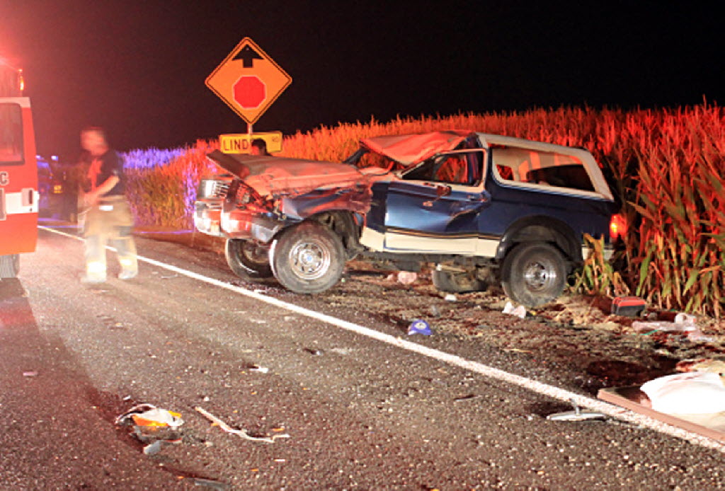 A Ford Bronco is shown after it crashed with five teenagers aboard, after authorities say one of the passengers lit the driver’s armpit hair on fire with a lighter in rural Ada County outside of Boise. All five were hurt in the crash Sunday and had to receive medical treatment. Story here. (AP Photo/Ada County Sheriff’s Office)