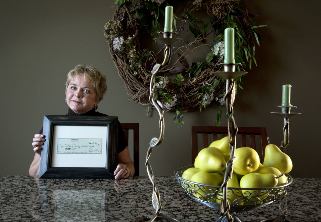 Rose Rhoades displays her copy of a check President George H. Bush wrote after having dinner with Tom Foley at Pasty Clark’s in 1989. Rose was their server for the evening and Bush’s personal check amounted to $140.00 dollars. Story here . (SR photo: Dan Pelle)