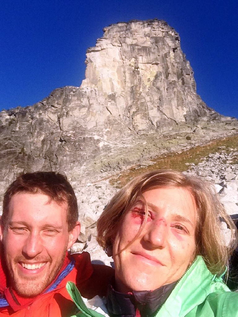 Ammi Midstokke, right, is comforted by climbing partner Jason Luthy below Chimney Rock east of Priest Lake as she was being rescued from and all night ordeal after being pinned by a shifting 1.5-ton boulder as they hiked off the mountain. More here. (Photo: Jason Luthy)