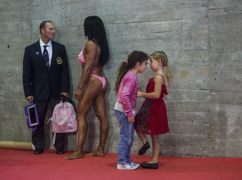 Facts: Children play back stage during the Arnold Classic Europe bodybuilding event in Madrid, Spain, Friday. You write the cutline. (AP Photo/Andres Kudacki)