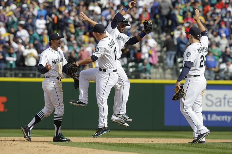 “Opening Day has taken on a momentum of its own, or so it seems,” posts Vince Grippi, A Grip on Sports. “Capitalizing the name? Really? What’s the big deal? So baseball is back. Does that mean all is right in the world again? Well, honestly, yes. ” Above, Mariners celebrate their Opening Day 4-1 victory over the Los Angeles Angels. More here.