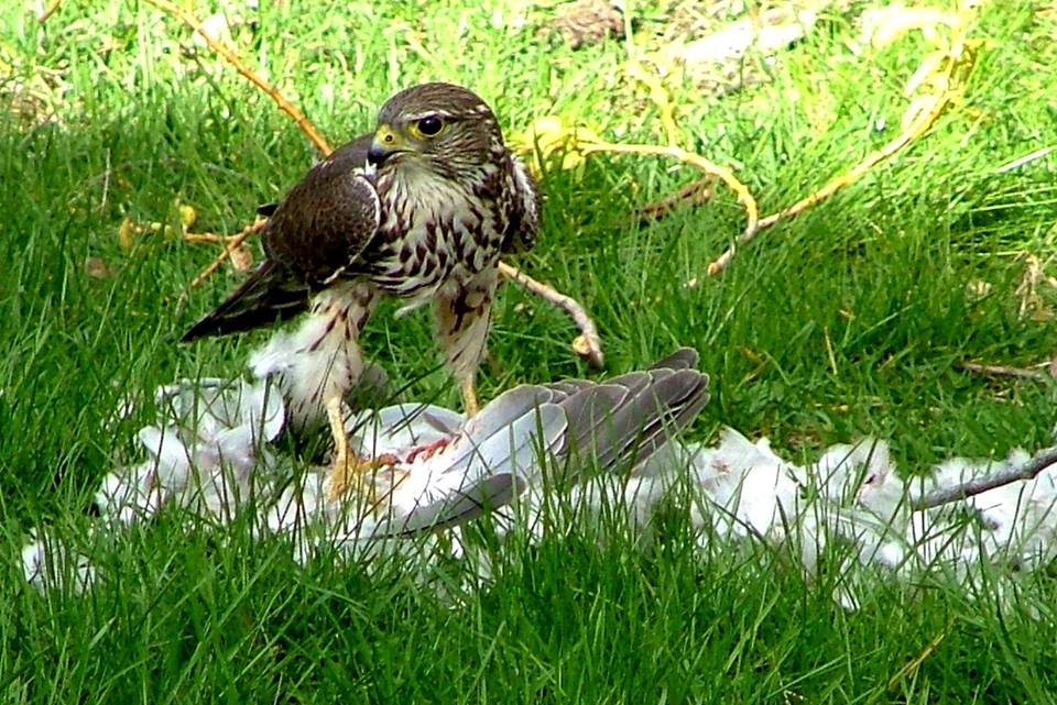 Circle of life: A kestrel hawk killed one of the pair of ring-necked doves who spend time in the tree outside the kitchen window at Kerri Thoreson’s home. Writes Kerri: “I’m heartbroken for the surviving dove. The hawk is not wasteful, he’s cleaned the carcass down to the feathers and was absolutely unconcerned when I opened the sliding door and stood there watching him feed just ten feet away. FYI we live right in town. ”