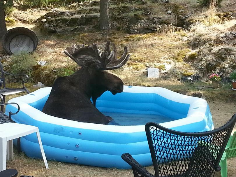 WILDLIFE WATCHING — Kathy Johnson’s photos and my recent post about moose taking over her backyard kiddie pool is getting quite a ride online. It’s even inspiring @twitmericks: