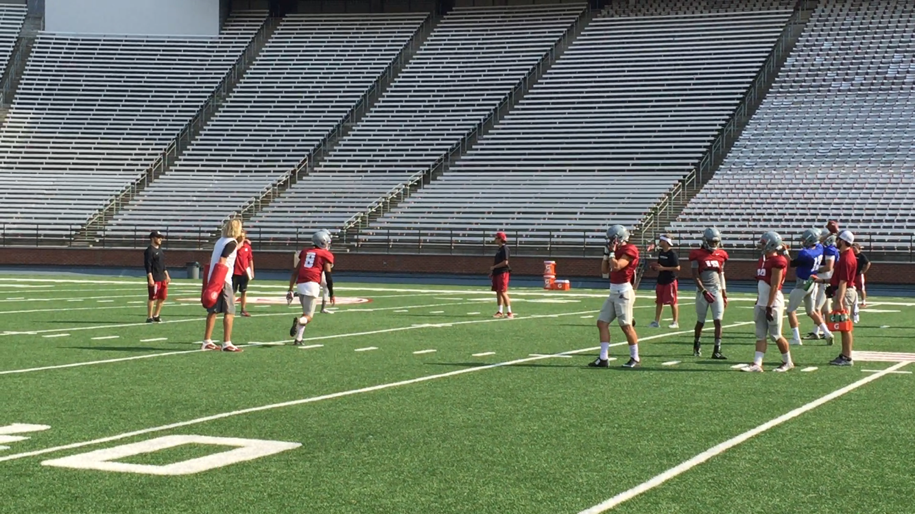 But whatever it was that gave the offense the edge, it showed up early in practice. Outside receiver Daniel Lilienthal made a one-handed catch in the end zone as cornerback Kirkland Parker tried to drag him down during the WR vs. DB drill. Zaire Andre did the same while being pushed by Kyle Torres a few plays later. Not to be outdone, D.J. Thompson had an one-handed touchdown reception of his own.