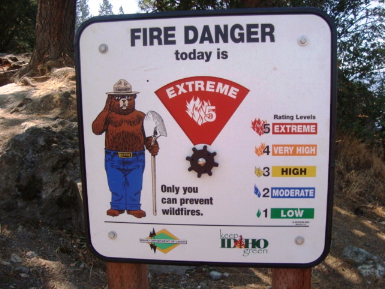 On her daily litter patrol, Walkabout snapped this photo of the new fire danger sign at the 3rd Street entrance to Tubbs Hill today.