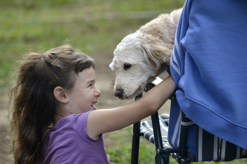 To close National Dog Day, how about this AP photo: Haven Maddox, 6, gets to know Daisy, a four-year-old Goldendoodle owned by Richard and Beverly Fox, in Matter Park in Marion, Ind., on Tuesday. (Jeff Morehead(/The Chronicle-Tribune via AP)