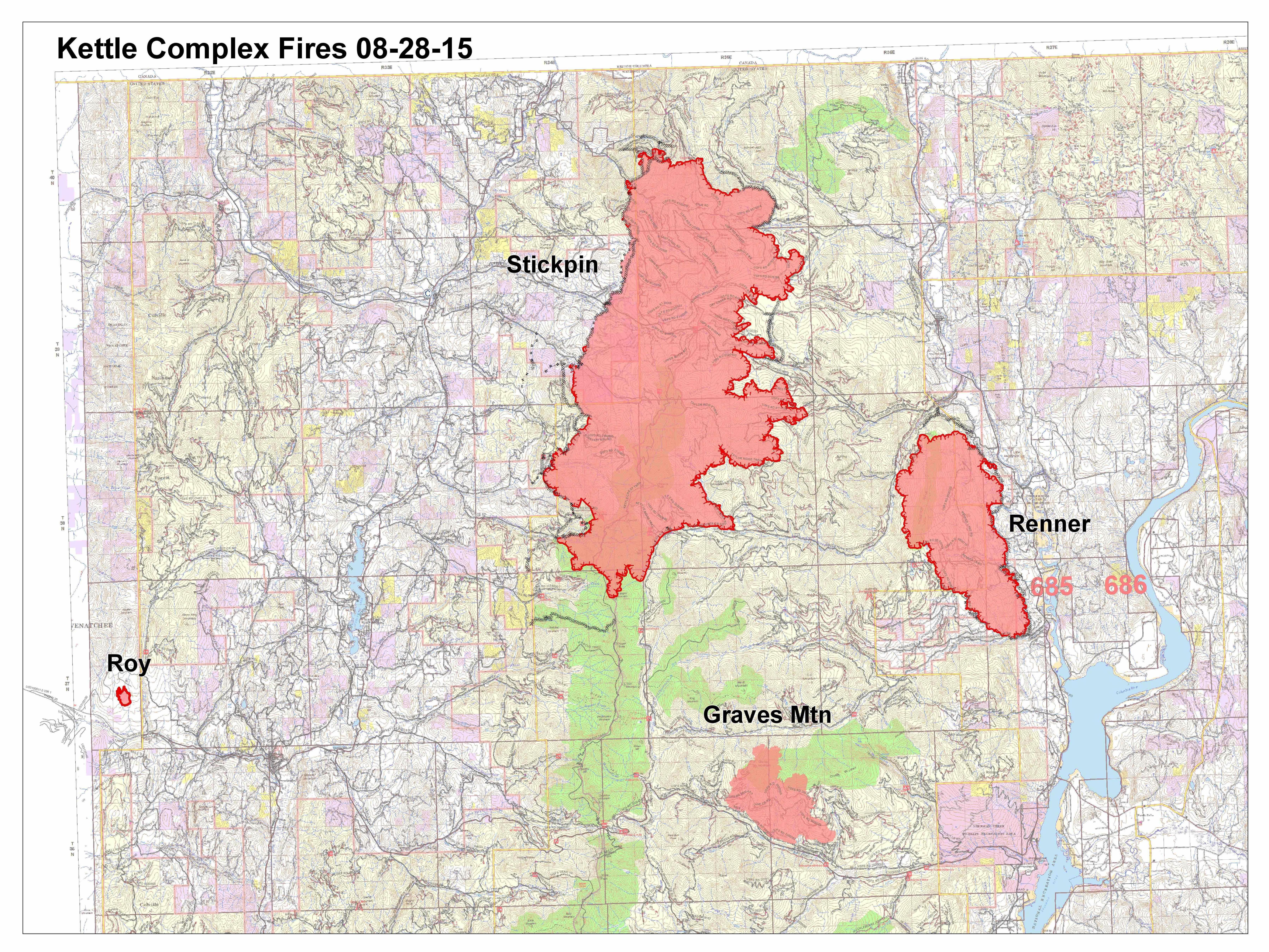 Kettle Complex Fires at 62,000 acres; some roads, trails closed