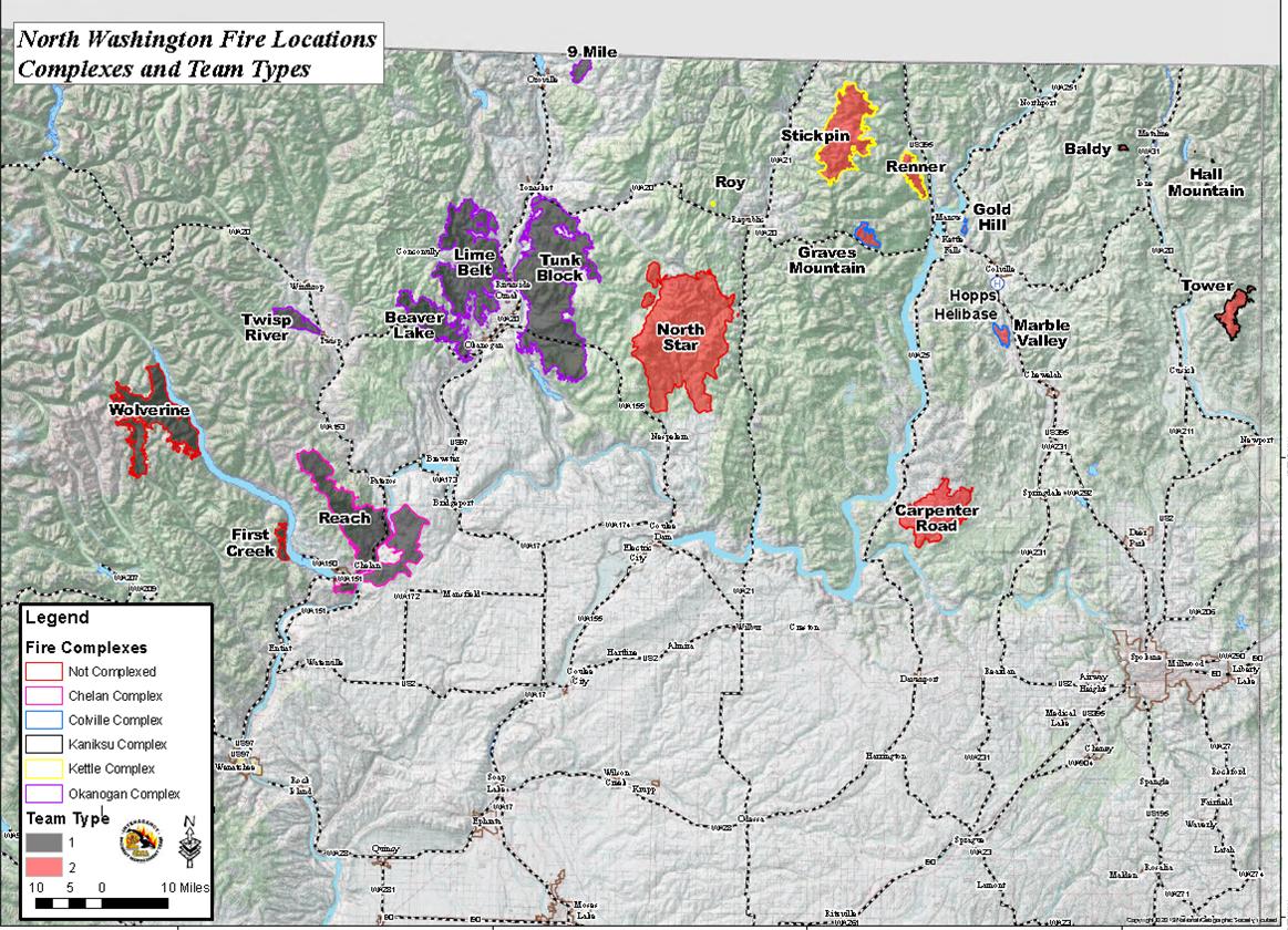 WILDFIRES — Following are Washington’s Top 10 Wildfires or complexes of fires as updated so far today on the Washington InciWeb page :