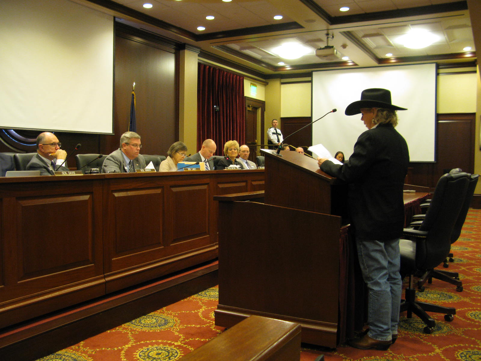 Debbie Amsden , executive director of the Idaho Horse Council and coordinator of the Idaho Horse Expo, said, “I’m here to plead with you to allow historic racing to continue.” She said, “I watched the governor sign the bill into law. I understand historical racing then and I understand it now. We saw pictures, we went to all the meetings. Nothing has changed, you did a great job a couple of years ago and I hope you do an even better job today. The terminals are based on live racing from the past, I understand that. … The horse industry in Idaho was gravely hindered with the economy bottomed out. It is now starting to improve. If you eliminate historical racing now, you will decimate the equine industry. … We believe live racing in Idaho will go away and simulcast will also be in jeopardy. … Idaho was built on the backs of horses … We are pleading with you to leave historical racing as is.”