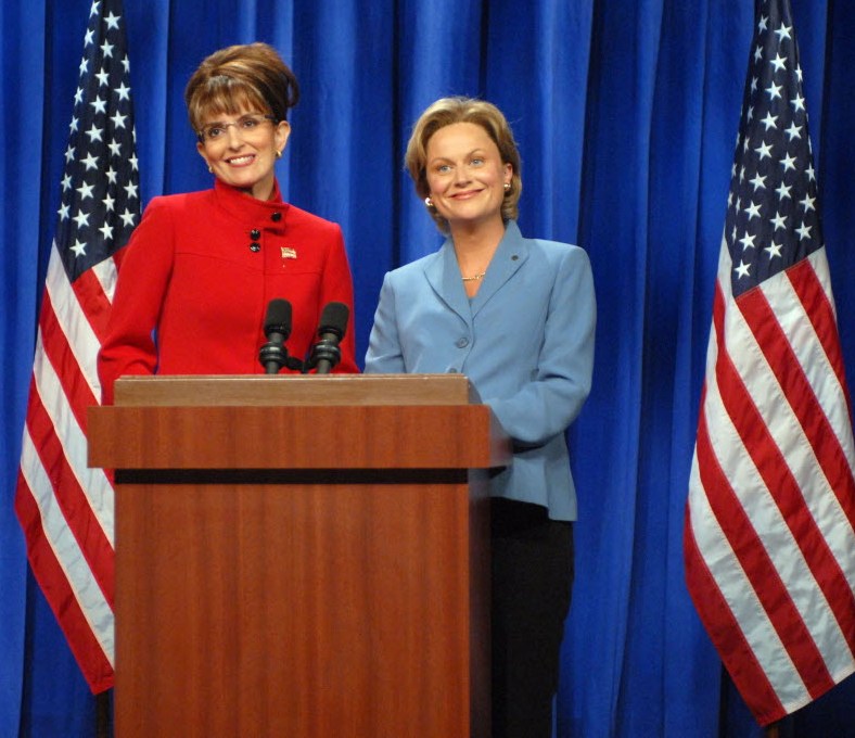 In this 2008 AP/NBC file photo, Tina Fey portrays Alaska Gov. Sarah Palin, left, and Amy Poehler as Sen. Hillary Clinton during a skit on “Saturday Night Live”)