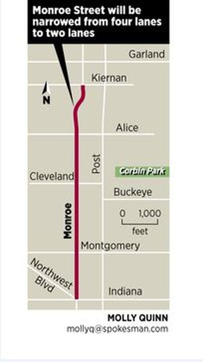 Last month, we wrote about a “road diet” project on North Monroe Street that would change part of the four-lane arterial to a street with two lanes, one for each direction, with a center turn lane.The conversion, which is expected two years from now and involves the stretch from Indiana to Kiernan avenues, will allow the city to create wider sidewalks, safer crosswalks, roomier parking slots and more efficient bus stops, city officials said.