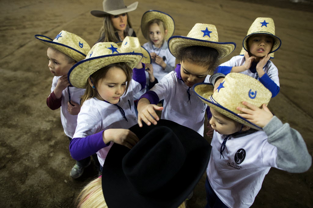Children from the Milton Hershey School try on cowboy hats prior to the exceptional rodeo during the Pennsylvania Farm Show in Harrisburg, Pa., Thursday. You write the cutline. (AP Photo/PennLive.com, Sean Simmers)