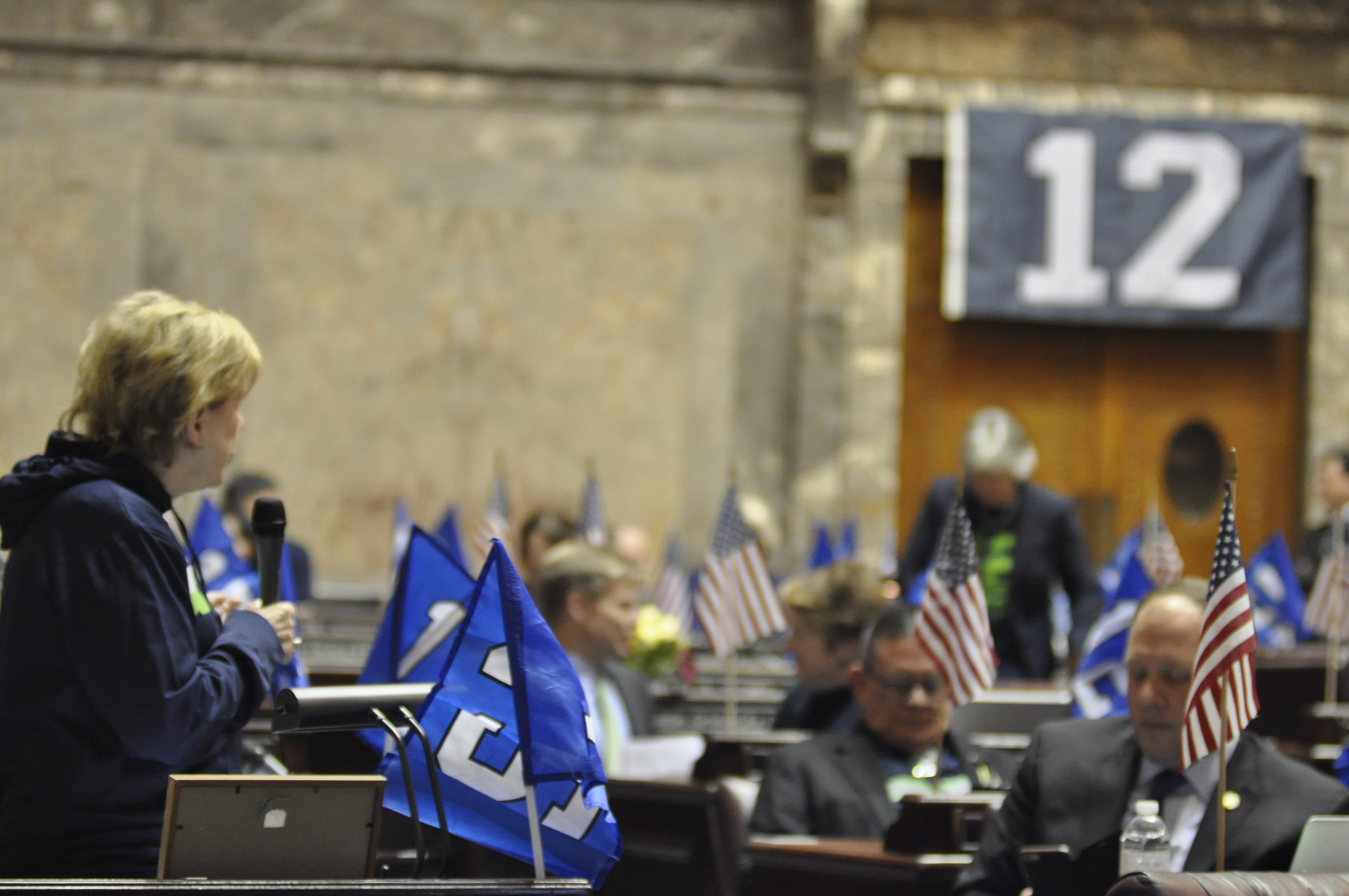 Sen. Jeanne Kohl-Wells, D-Seattle, chided long-time members who in 1998 voted against a bill for a new football stadium as late-comers to Seahawks fandom. “I’m not going to name names. But I have the recorded votes.”