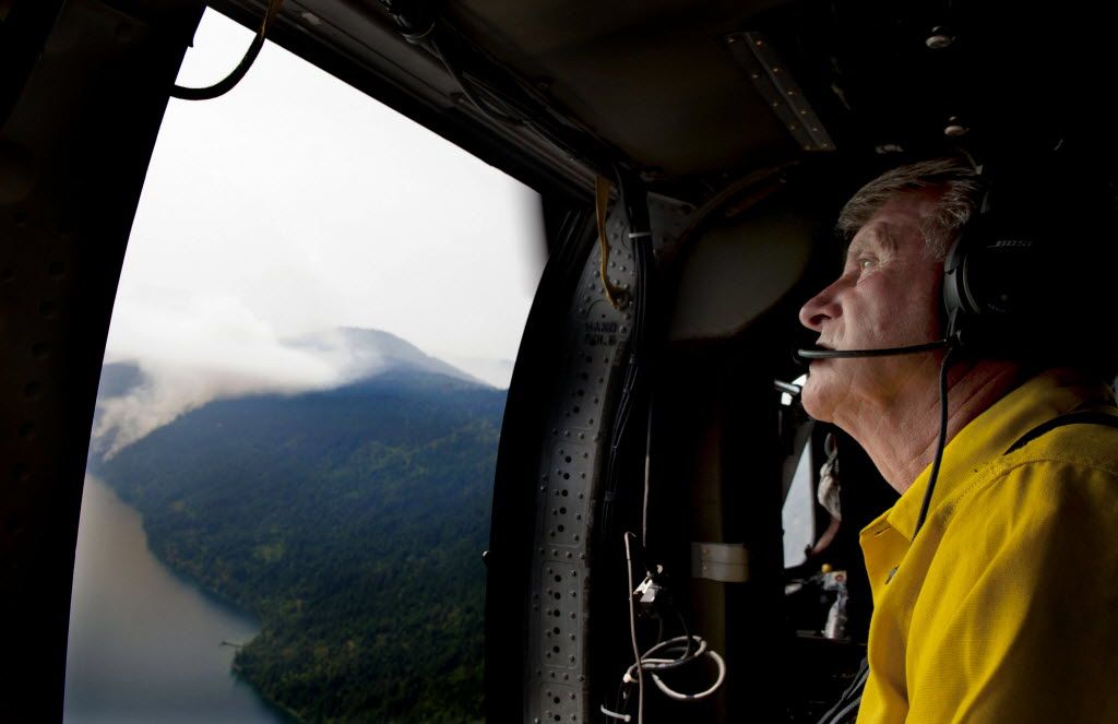 Gov. Butch Otter toured the Cape Horn Fire near Bayview today, surveying the damage done by the 1,155-acre blaze near the lakeside town of Bayview, and urged homeowners to keep brush and trees near homes trimmed. “Trim the threat,” he said, after flying over still-smouldering hillsides, where helicopters were dropping water, and touring the burned remains of a home on the shore of Lake Pend Oreille. Otter urged Idahoans to create “defensible space” around their homes to protect them from wildfires.