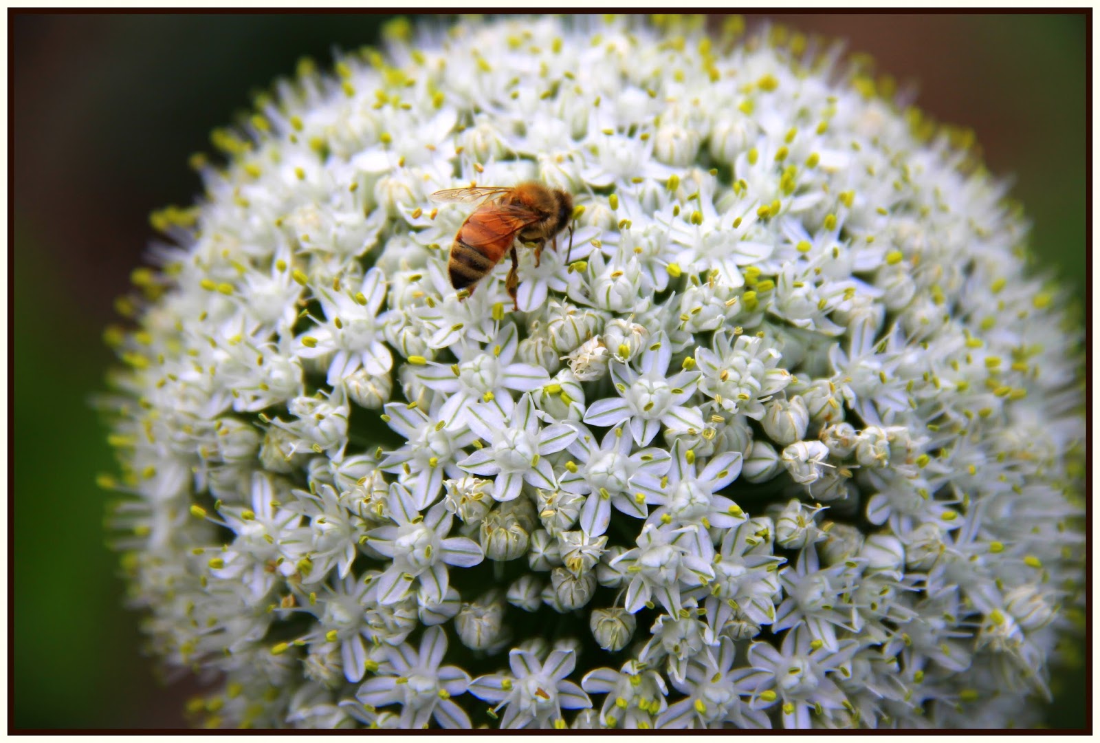 Marianne Love/Slight Detour posts: “Chad Moore’s honey bees remain busy and welcome over here at the Lovestead. A volunteer onion from last year’s garden has gone to seed and is sporting three big beautiful balls of tiny flowers on its three stems. The bees have been having a hey day.” More from Slight Detour here.