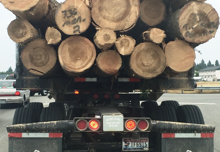 Commenter HFHayden sent this photo of a bumpersnicker he spotted earlier this month on a logging truck at H95/I-90. It read: “Welcome to Idaho: Please Take A Wolf and Go Home.”