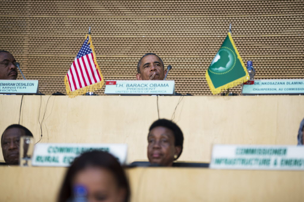 U.S. President Barack Obama waits to deliver a speech to the African Union today in Addis Ababa, Ethiopia. You write the cutline. (AP Photo/Evan Vucci)